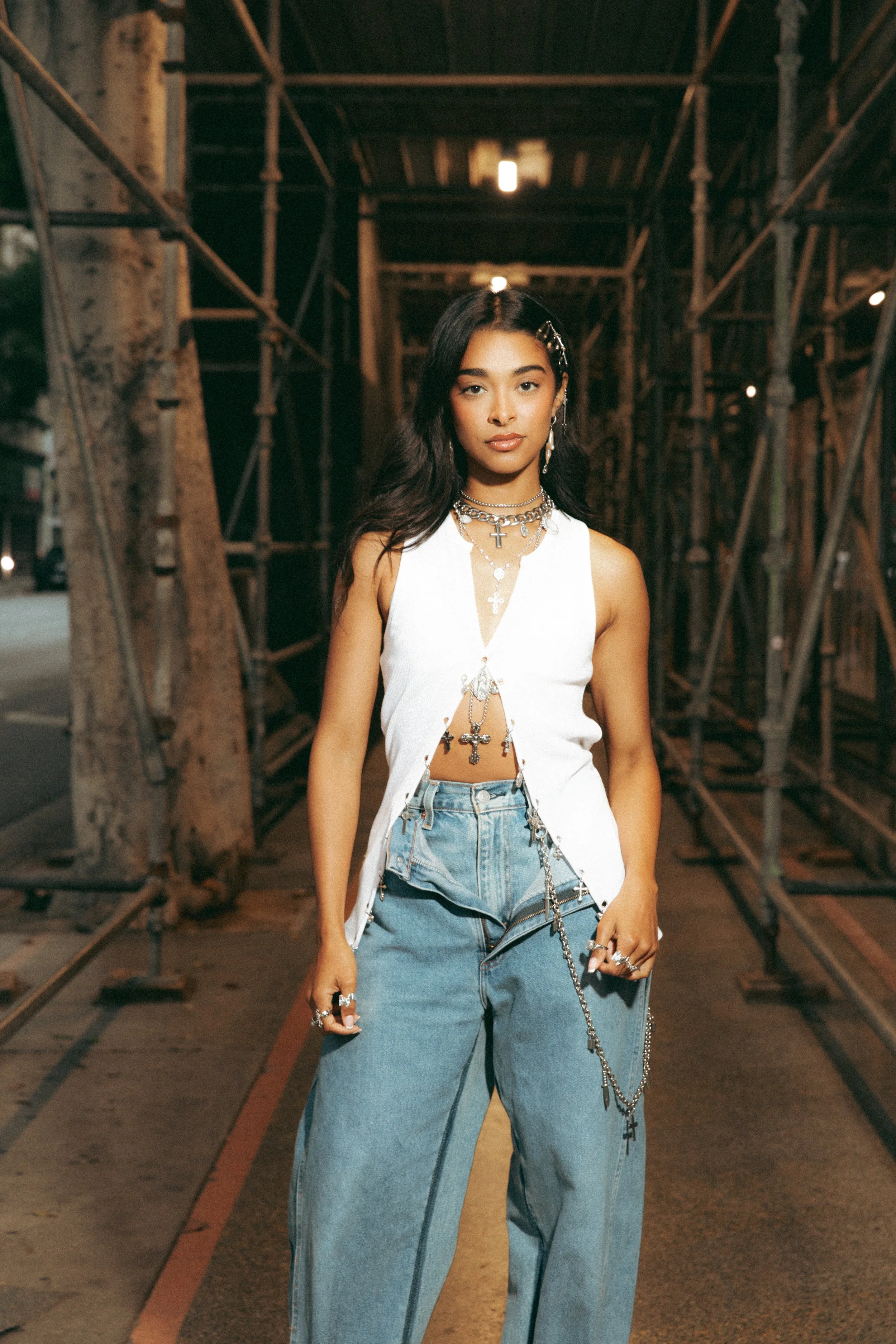 - Oversized INRI cross adds a bold and eye-catching element.